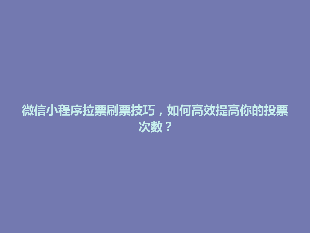 通川区微信小程序拉票刷票技巧,如何高效提高你的投票次数?